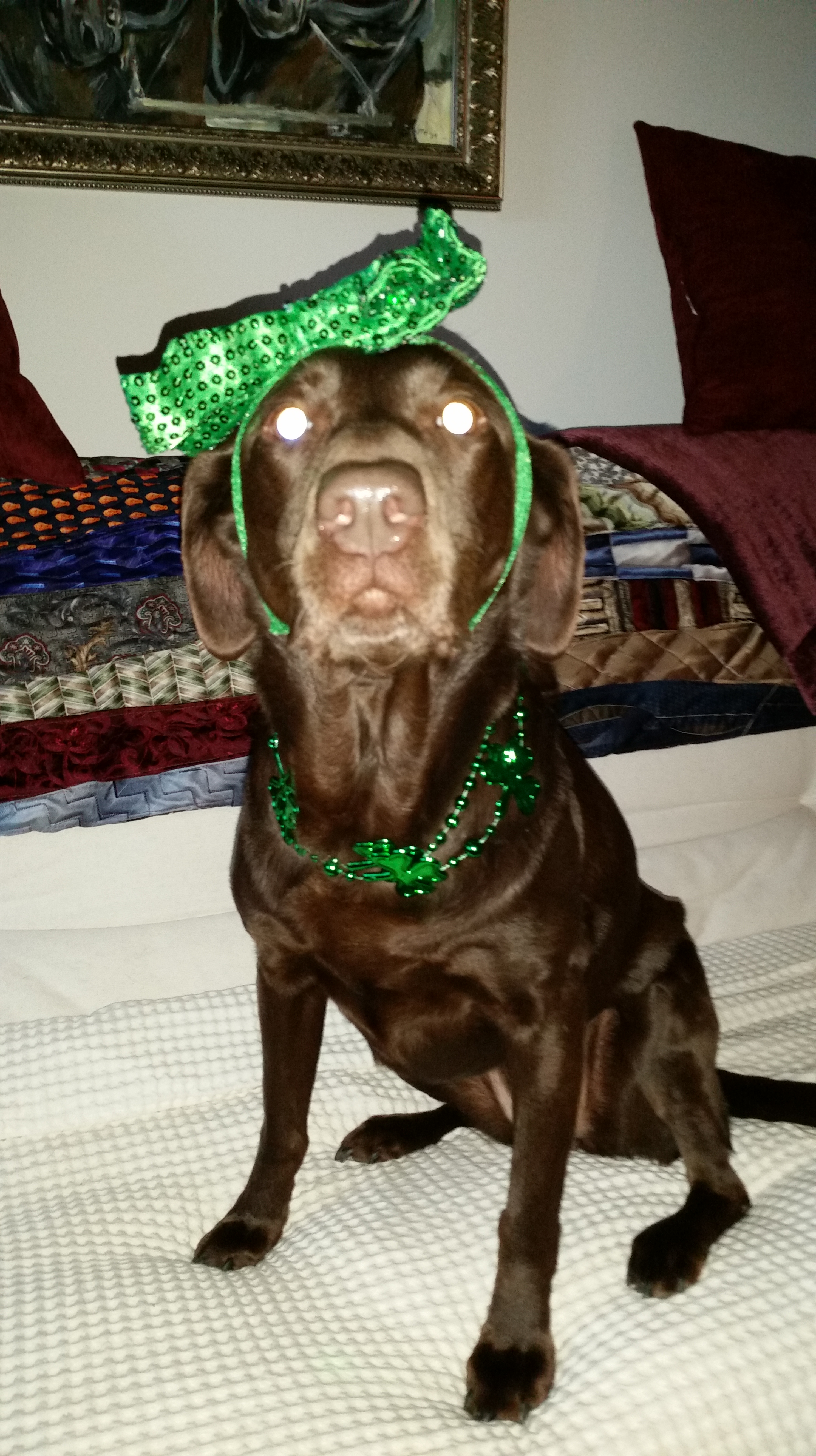 Emma Dresses To Impress January 18, 2017September 12, 2020 by usathroughoureyes Share this:Share Click to email a link to a friend (Opens in new window) Email Click to print (Opens in new window) Print Click to share on Facebook (Opens in new window) Facebook Like Loading... usathroughoureyes ~ USA Through Our Eyes ~ Stories Told Through Words, Photographs, Videos and Sound Related 6 thoughts on “Emma Dresses To Impress” So good to hear from you, Ann ~ All is well here in sunny Florida! LikeLiked by 1 person Youβre welcome! LikeLiked by 1 person Thank you Warren. Emma is a pet rescue and is such a sweet and sociable chocolate lab. LikeLiked by 2 people Pingback: The Journey to Florida – day 17 – USA Through Our Eyes Iβm impressed! π Blessings! LikeLiked by 1 person Very fancy pooch! I hope you both are well! Kind regards, Ann LikeLiked by 1 person Please Leave a Reply Δ This site uses Akismet to reduce spam. Learn how your comment data is processed.